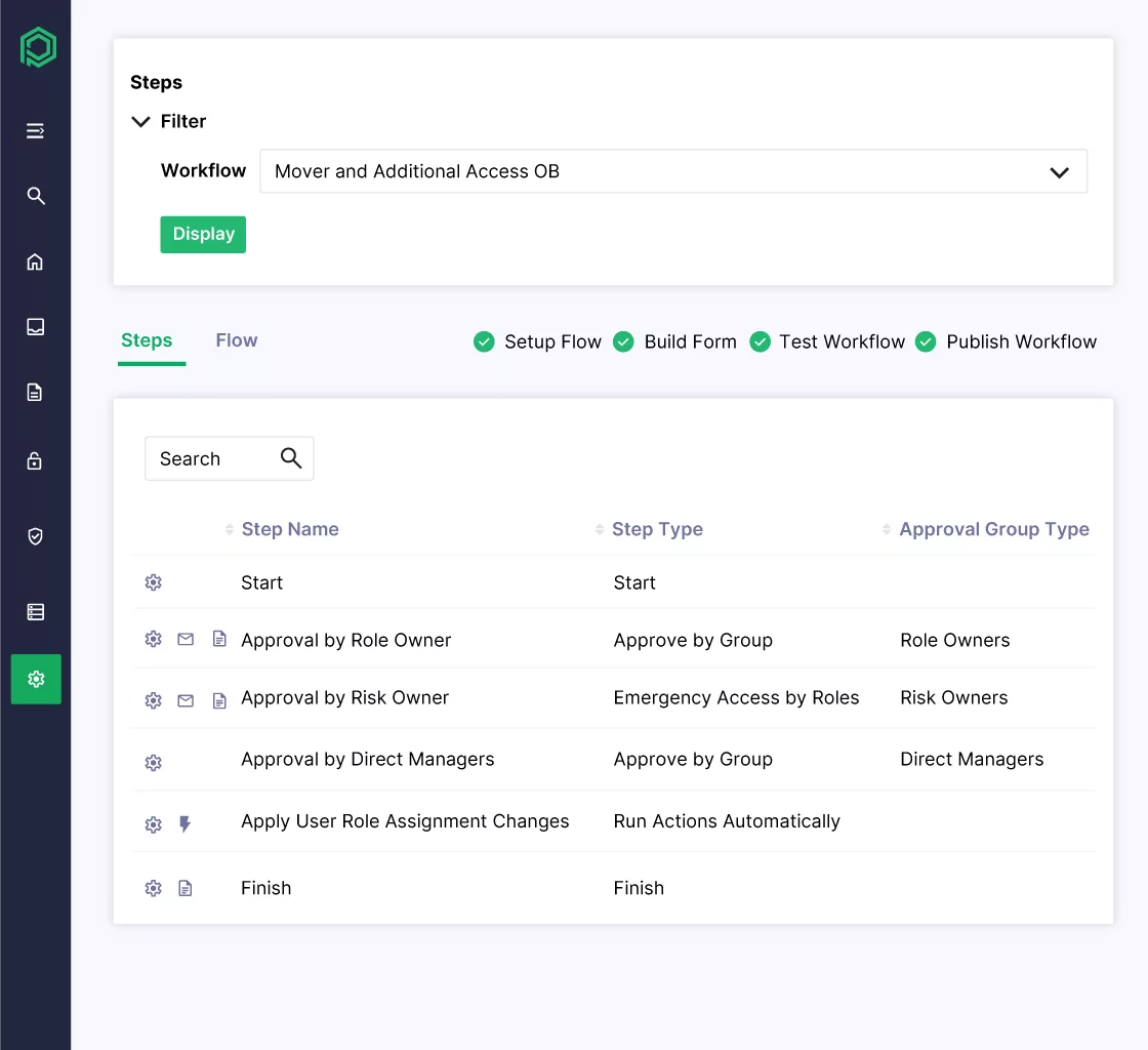 - Workflow-based multi-step access approvals, policy-based routing with full audit trail and documentation.